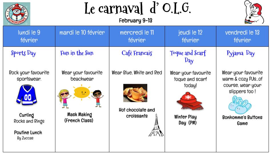 Dear Parents,   Please see attached calendar for details regarding our upcoming  Carnaval d’Hiver! Le...